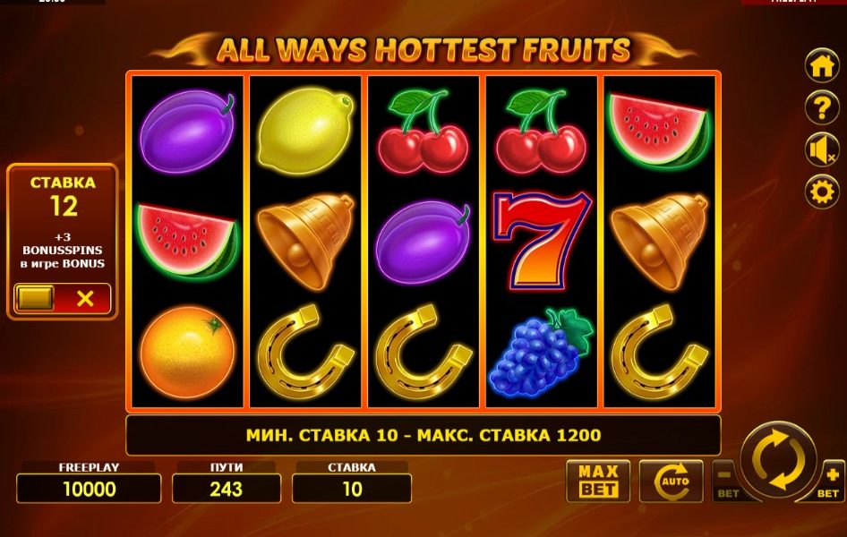Developed by leading software provider, All Ways Hottest Fruits is a classic fruit-themed slot game with a modern twist. The game features a traditional fruit machine layout with symbols such as cherries, lemons, and watermelons, as well as high-paying symbols like lucky sevens and bells. With its All Ways payline structure, players have the opportunity to win in 243 different ways on every spin.